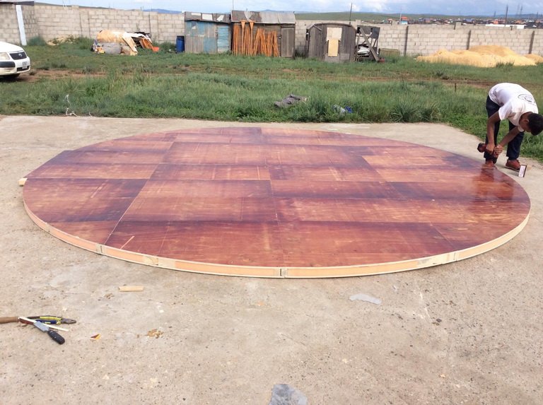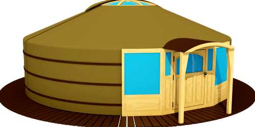 • De yurt-vloer. Het kan echter tegen extra kosten worden besteld.